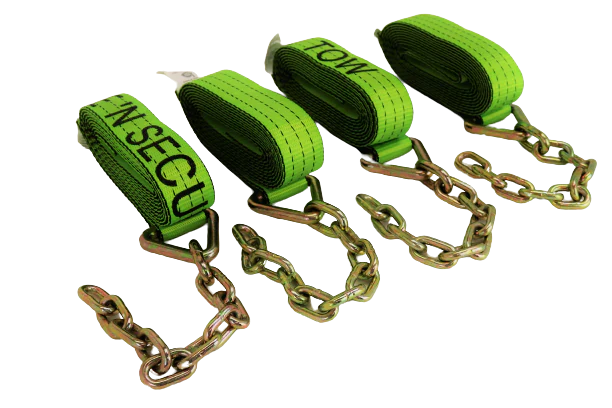 - Four (4) 2" x 14' Straps with 5/16" x 12" G70 Chain Tails