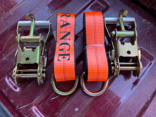 2PK Through the wheel strap kit with Forged Mini J straps and Chain Tail ratchets / Free Shipping