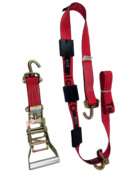 Red TECNIC PRO Swivel-J Ratchet Wheel strap with Tread Grabs