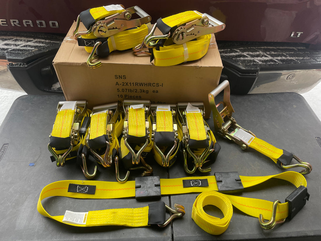 8 Pack of 2” X 11’ Car hauler Ratchet Wheel straps
